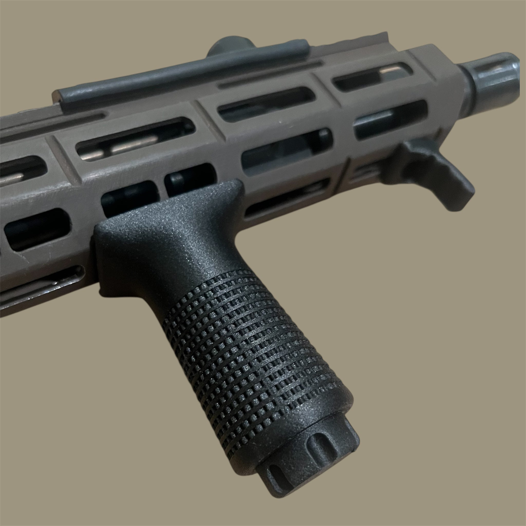 A lightweight, additively manufactured handguard with a simple yet functional design. Its slim profile, all-sides M-LOK compatibility, and integrated venting promote effective heat dissipation while providing a comfortable, secure grip, optimized for 11.5″ builds.